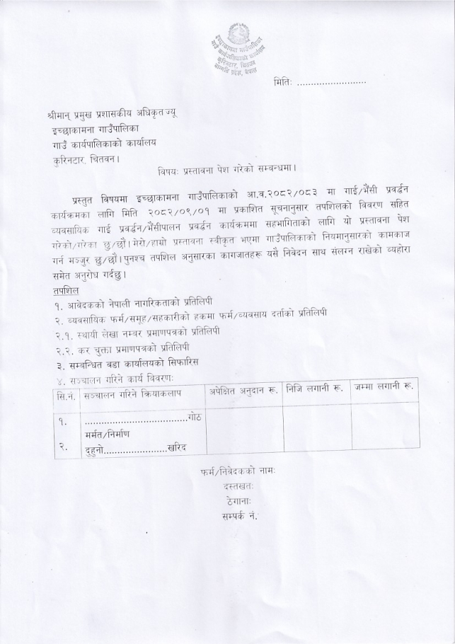 गाई/भैंसी कार्यक्रममा प्रस्ताव/निवेदन पेश गर्ने सम्बन्धी सूचना।