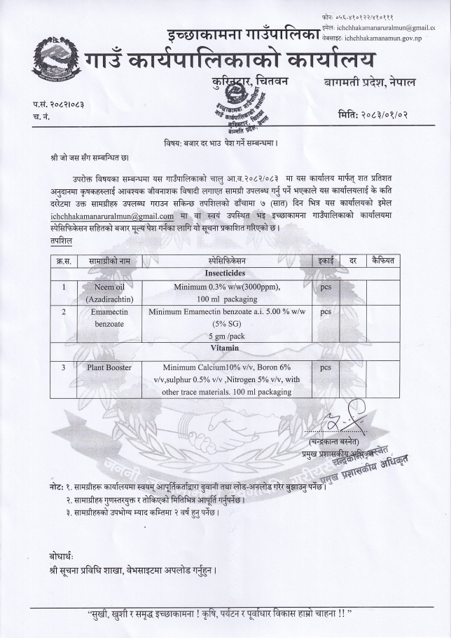 बजार दर भाउ पेश गर्ने सम्बन्धमा।