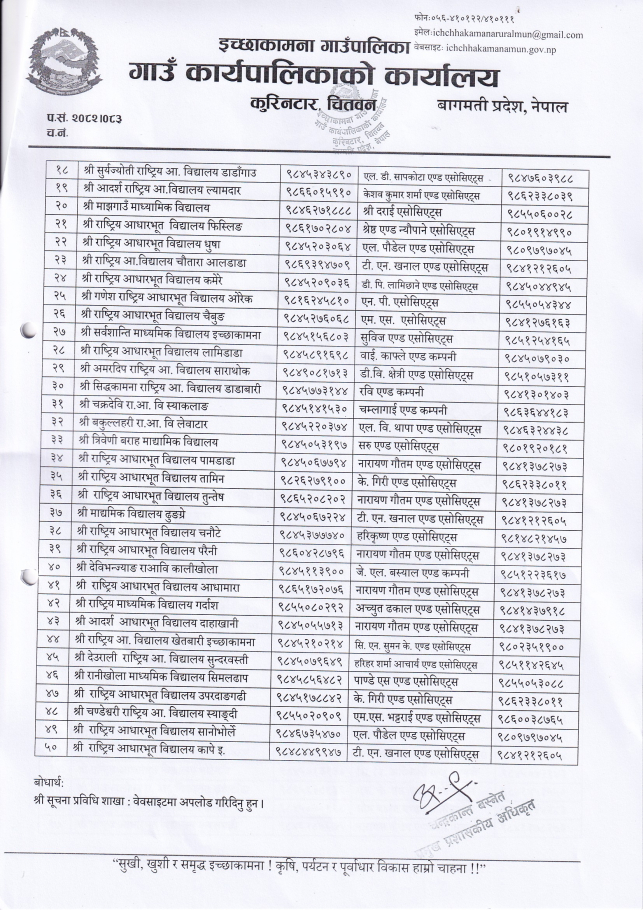 नि:शुल्क तालिम दिने सम्बन्धमा