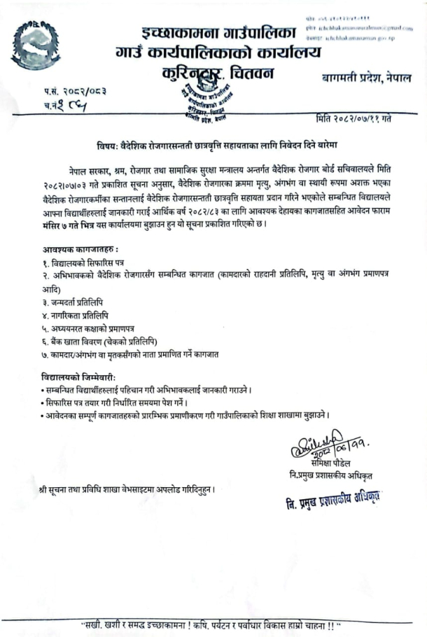 वैदेशिक रोजगारसन्तती छात्रवृत्ति सहायताका लागि निवेदन दिने बारेमा