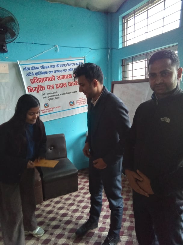 गरिब घर परिवार पहिचान तथा परिचयपत्र वितरणको लागि गणक तथा सुपरीवेक्षकहरुको परीक्षणको समापन तथा नियुक्त्ति पत्र प्रदान कार्यक्रम ।