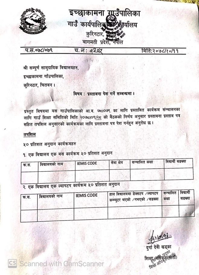 प्रस्तावना पेश गर्ने सम्बन्धमा, श्री सम्पुर्ण सामुदायिक विद्यालयहरु ,
