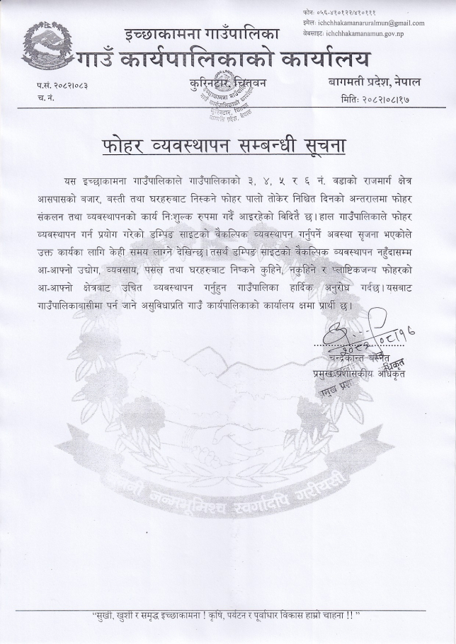 फोहोर व्यवस्थापन सम्बन्धी सूचना।